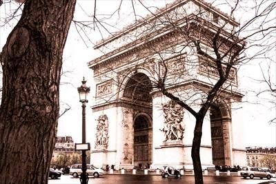 【フランスの風景ポストカード】凱旋門のあるパリ(セピア)風景3のはがきハガキ葉書