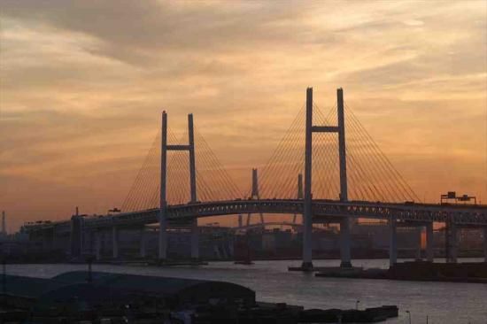 【日本の風景/横浜のポストカード】横浜港の朝横浜ベーブリッジのはがきハガキ photo by MIRO