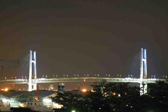 【日本の風景/横浜のポストカード】横浜港の夜の横浜ベーブリッジのはがきハガキ photo by MIRO