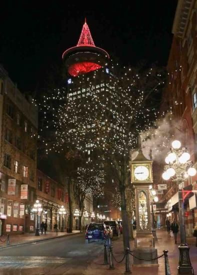 【カナダの風景/バンクバーのポストカード】バンクバーの夜ガスタウンGASTOWN葉書ハガキ photo by MIRO