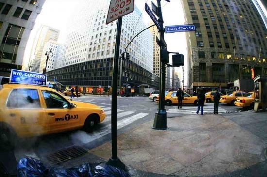 【アメリカの風景/ニューヨークのポストカード】タクシーのある風景のハガキ photo by MIRO