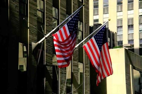 【アメリカの風景/ニューヨークのポストカード】マンハッタン星条旗のある風景のハガキ photo by MIRO