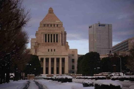 【日本の風景/東京のポストカード】東京都千代田区雪の休日の国会議事堂ハガキ photo by MIRO