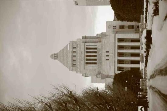 【日本の風景/東京のポストカード】東京都千代田区雪の休日の国会議事堂(白黒)ハガキ photo by MIRO