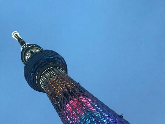 【日本のポストカードのAIR】墨田区虹色の照明の東京スカイツリーのハガキはがき photo by MIRO