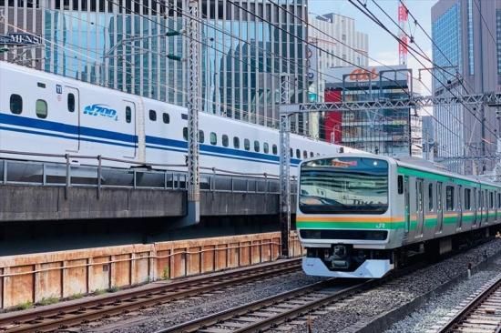 【日本のポストカードのAIR】有楽町を通過するN700Sと上野東京ラインのハガキはがき photo by MIRO