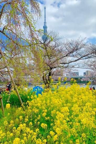 【日本のポストカードのAIR】東京スカイツリー・隅田川と菜の花の葉書ハガキはがき photo by MIRO