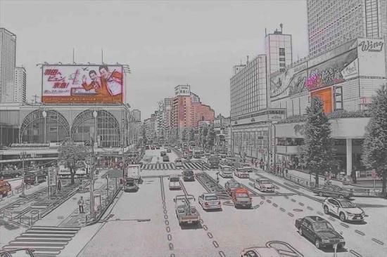 【日本のポストカードのAIR】東京都JR品川駅前 国道15号 鉛筆画の葉書ハガキはがき photo by MIRO