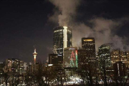 【カナダのポストカードの】アルバータ州カルガリークリスマス頃夜景の葉書ハガキはがき photo by MIRO