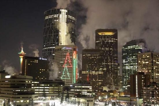 【カナダのポストカード】アルバータ州カルガリークリスマス頃夜景の葉書ハガキはがき photo by MIRO