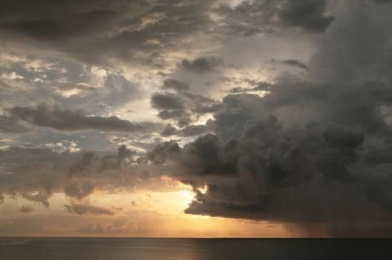【日本のポストカード】沖縄県沖縄本島夕焼けと夕立の葉書ハガキはがき photo by MIRO