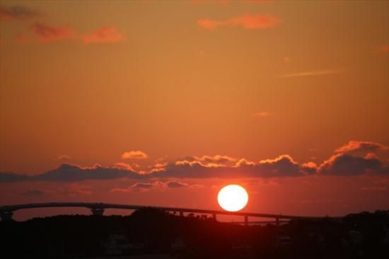日本の南国風景ポストカードAIR 宮古島平良部大橋と夕日の葉書ハガキはがき photo by MIRO