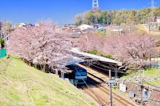 【日本の風景ポストカード】相鉄弥生台駅の桜と相鉄電車のハガキはがき photo by MIRO
