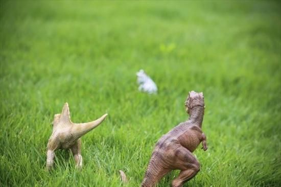 【ポストカード】庭で繰り広げられる恐竜対シマウマの対決の絵葉書ハガキはがき photo by MIRO