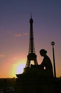 【限定ヨーロッパポストカード】フランスパリエッフェル塔と女性 朝焼けの街ハガキはがき絵葉書