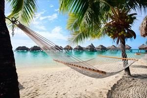 【限定販売夏のポストカード】バンガロー・ハンモック・ヤシの木モーレア島の葉書ハガキはがき絵葉書