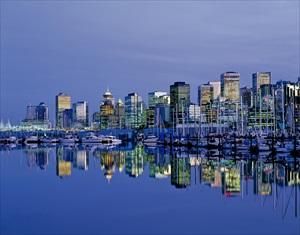【カナダの風景ポストカード】ブリティッシュコロンビアバンクーバーダウンタウンの夜の葉書はがきハガキ☆