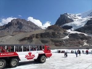 【カナダの風景ポストカード】コロンビア大氷原のアサバスカ氷河と雪上車の葉書はがきハガキ☆