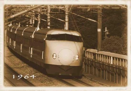 【日本の風景ポストカード】「1964」白黒写真の東海道山陽新幹線0系の葉書はがきハガキ
