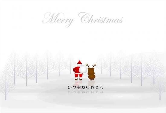 【クリスマスのポストカード】「Merry Christmas いつもありがとう」去りゆくサンタとトナカイの葉書 はがきハガキ
