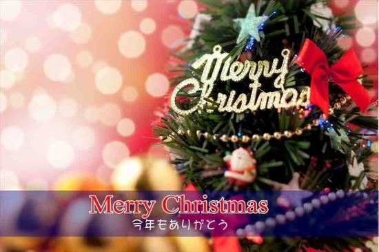 【クリスマスのポストカード】「Merry Christmas 今年もありがとう」ツリーの葉書はがきハガキ