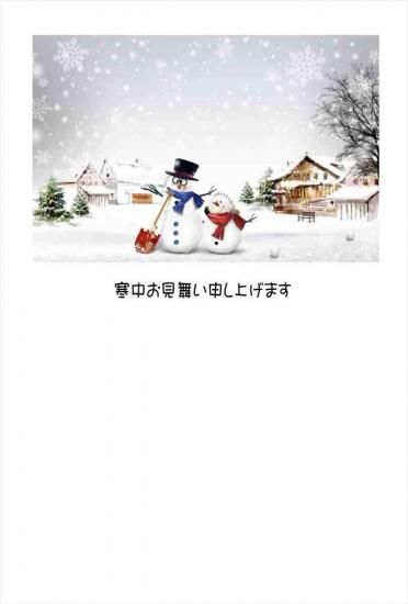 【冬の挨拶ポストカード】「寒中お見舞い申し上げます」雪だるまのイラスト1の葉書はがきハガキ