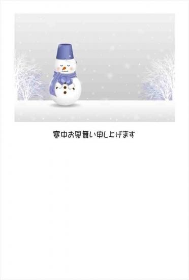 【冬の挨拶ポストカード】「寒中お見舞い申し上げます。」雪だるまのイラスト8の葉書はがきハガキ半分書きスペース