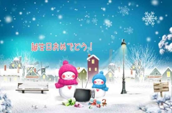 【おめでとうのポストカード】文字入り「誕生日おめでとう」雪だるまのイラスト雪ダルマイラストのハガキ葉書