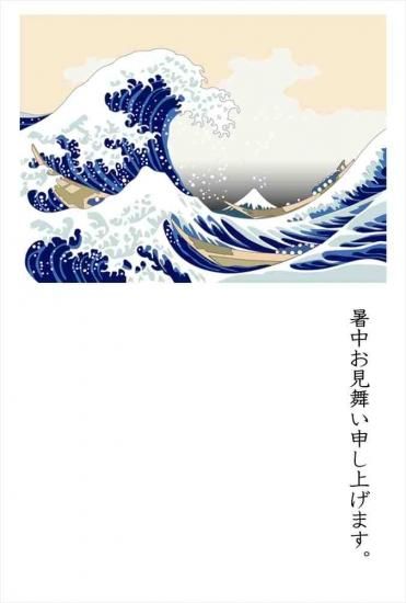 【夏の挨拶ポストカード】「暑中お見舞い申し上げます。」浮世絵(白い部分があるので書き込めます)の葉書はがきハガキ☆