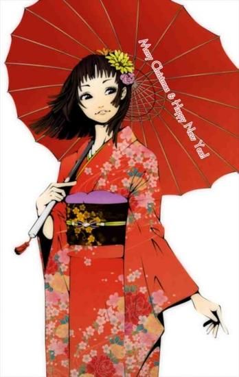 【季節の挨拶ポストカード】「Merry Christmas & Happy New Year 」アニメ女性の葉書はがきハガキ☆