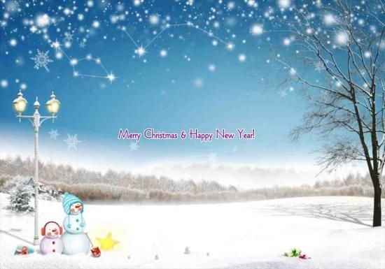 【季節の挨拶ポストカード】「Merry Christmas & Happy New Year 」 雪だるまのイラストの葉書はがきハガキ☆