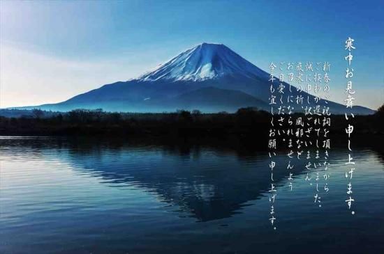 【季節の挨拶ポストカード】「寒中お見舞い申し上げます 新春のご祝詞を頂きながらご挨拶」富士山の葉書はがきハガキ☆