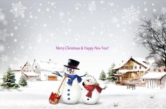 【季節の挨拶ポストカード】「Merry Christmas & Happy New Year 」 雪だるまのイラストの葉書はがきハガキ☆