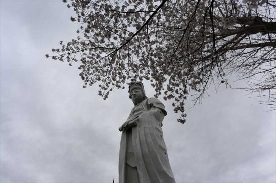 【日本の春風景ポストカード】群馬県高崎市白衣大観音との桜葉書ハガキはがき photo by MIRO
