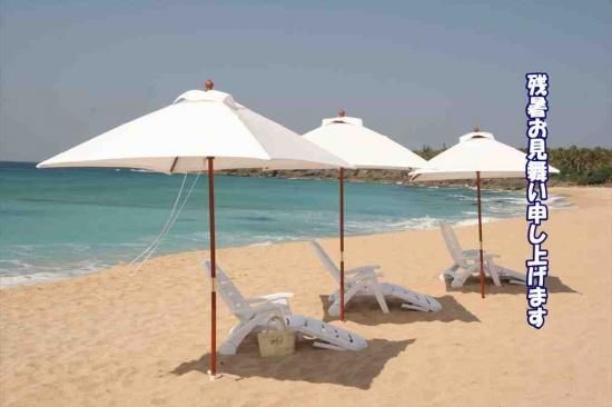 【季節夏ポストカードAIR】「残暑お見舞い申し上げます」文字入りポストカード絵葉書ハガキはがき 砂浜のパラソル