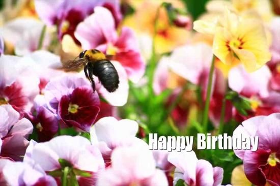 【言葉で伝える誕生日ポストカードのAIR】「Happy Birthday」文字入りポストカード絵葉書ハガキはがき 花と蜂