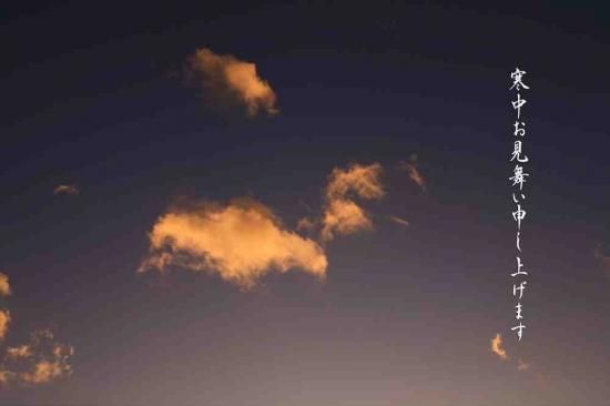 「寒中お見舞い申し上げます」空と雲のある文字入りポストカード絵葉書ハガキはがき