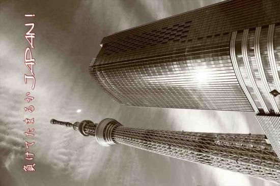 「負けてたまるか JAPAN!」東京スカイツリーの文字入りポストカード絵葉書ハガキはがき