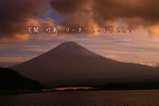 「尖閣・竹島 リーダ! しっかりしろ!」夕暮れの富士山の文字入りポストカード絵葉書ハガキはがき