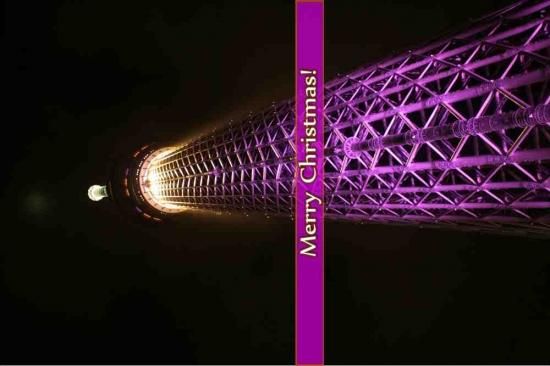 【クリスマスポストカードAIR】「Merry Christmas!」東京スカイツリーの夜景の文字入りポストカード絵葉書ハガキはがき