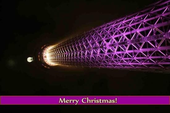 【クリスマスポストカードAIR】「Merry Christmas!」東京スカイツリーの夜景の文字入りポストカード絵葉書ハガキはがき