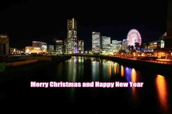 【クリスマスポストカード年賀状AIR】「Merry Christmas and Happy New Year」みなとみらいの夜景のポストカード