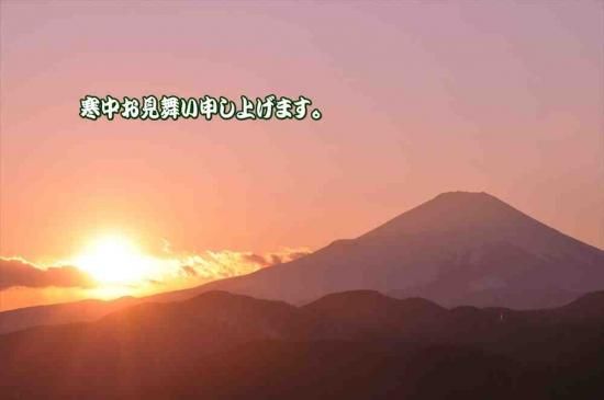 【季節の挨拶ポストカード】「寒中お見舞い申し上げます。」富士山と朝日の風景葉書ハガキはがき