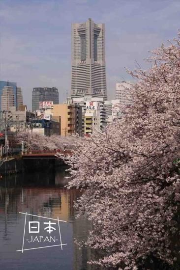 【日本の観光ポストカード】「日本・JAPAN」桜の季節の横浜ランドマークの葉書ハガキはがき