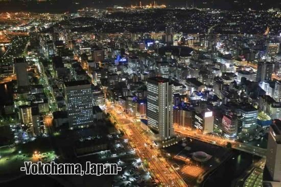 【日本の観光ポストカード】「Yokohama, Japan」ランドマークからの横浜の夜景のハガキはがき