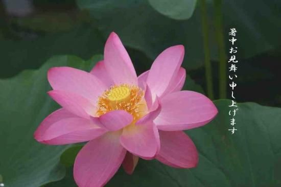 【夏の挨拶ポストカード】「暑中お見舞い申し上げます」蓮の花の葉書ハガキはがき photo by MIRO