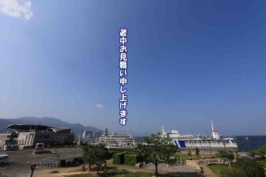 【夏の挨拶ポストカード】「暑中お見舞い申し上げます」滋賀県大津市浜大津のミシガンと海の子の葉書ハガキはがき photo by MIRO