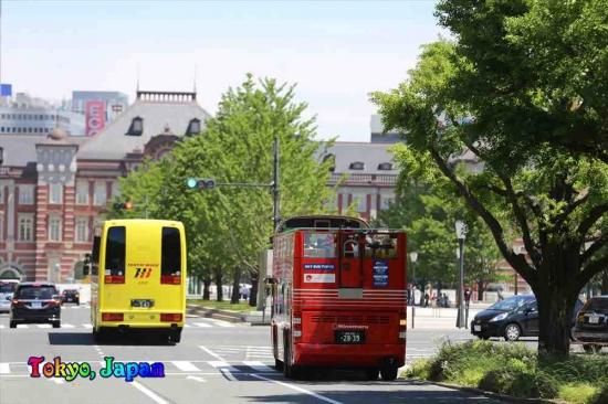 【日本の観光地ポストカード】「Tokyo, Japan」東京駅丸の内、はとバスの葉書はがき photo by MIRO
