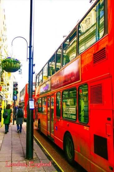 【イギリスの観光地ポストカード】「London, England」ロンドンのダブルデッカーバスの葉書はがき photo by MIRO