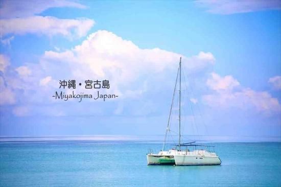 日本の観光地ポストカードAIR】「沖縄・宮古島Miyakojima Japan」ヨットと青い海の葉書はがきハガキ photo by MIRO